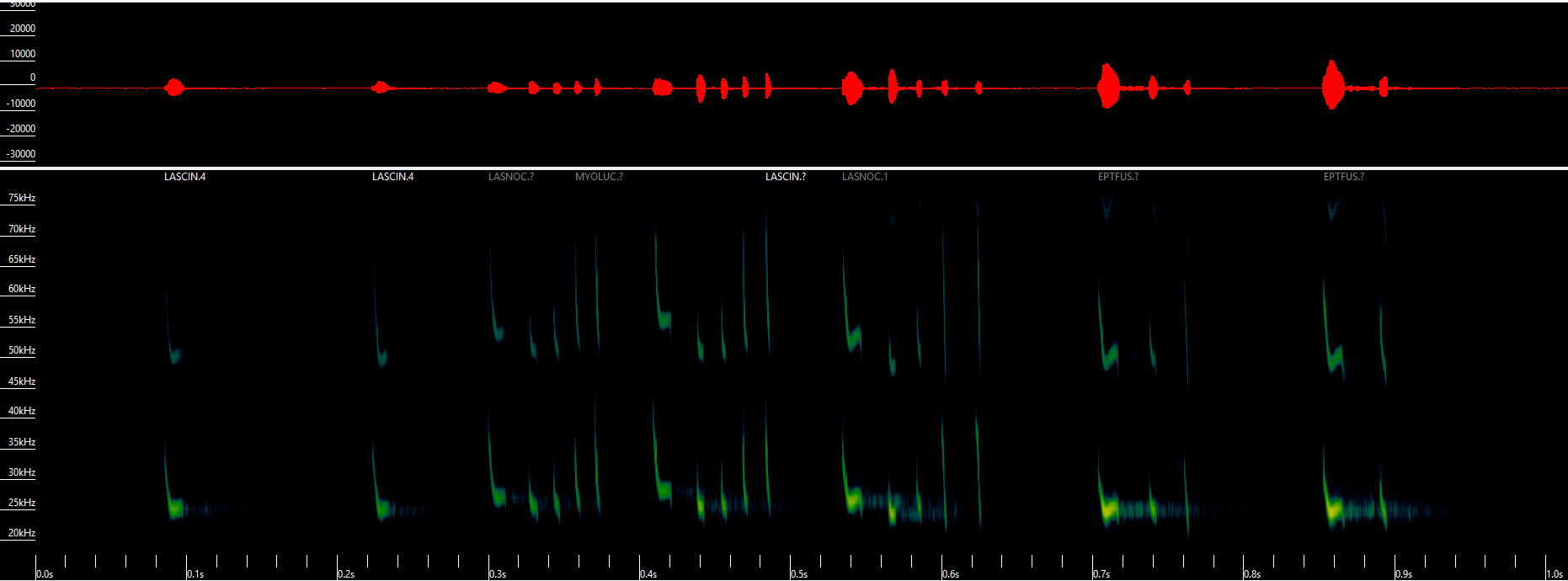 The silent song: Stunning sonagram of a song of Silver-haired bat recorded in December 2024 in Manhasset - 22 signals emitted within one second, above the human hearing range.